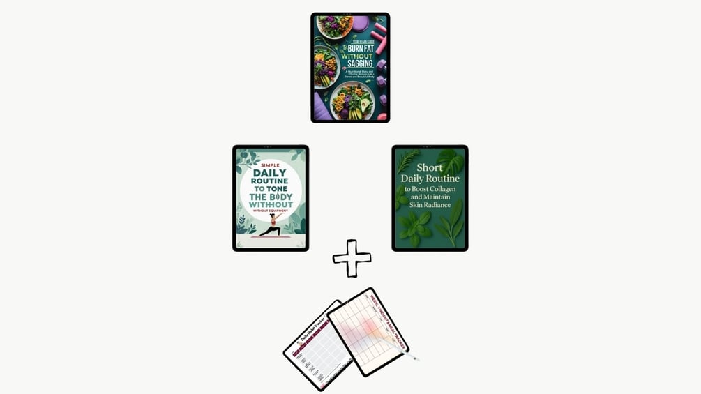 Plant-based meal plan, home workouts, skincare routine, motivation page, daily tools